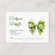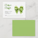 Lucky charm St. Patrick's diaper raffle girls baby shower Enclosure Card. This St. Patrick's Day themed enclosure card invites guests to participate in a diaper raffle. These Lucky Charm St. Patrick's Day Diaper Raffle Shower Enclosure Cards are the perfect way to add a festive and fun element to your baby shower. The cards encourage guests to bring a pack of diapers for a chance to win a special prize. The design is wonderfully whimsical, featuring a sage green coquette bow as a charming accent, beautifully complemented by bright green clovers. Adding to the playful spirit, the words "Diaper Raffle" are creatively displayed on the card, with adorable shamrocks cleverly replacing the letter "a" in both words. The back of the card maintains a refined and cohesive aesthetic with a solid sage green background, providing an elegant finishing touch.
