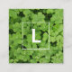 Lucky clover monogram, green medow square business card