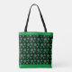 Lucky green four-leaf clover pattern on black background Tote Bag.