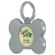 Lucky Dog with shamrock and customisable name, phone, and background colour. Personalise with your dog's information, and use the edit menu to change background to another colour.