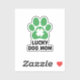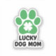My lucky charm has four paws! Celebrate St. Patrick's Day with your furry friend using this adorable ""Lucky Dog Mom"" sticker.