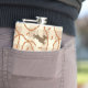 Well made flask, a little better than I had expected. Flask came in clear plastic box which gave it a nice presentation when I took it out of the zazzle packaging. Image is not printed on flask but on sticker. Don't know how this will hold up I haven't used it yet. This would make a Great gift! I plan to purchase more for friends! Cheers. I thought a little brighter than computer. Very crisp, writing wasn't