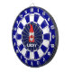 Lucky gnomw with heart on blue and white Dart Board. Text can be personalised.