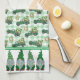 A Beautiful Green Kitchen Dish Towel Designed With Green Pick Up Trucks, Horseshoes And Gnomes