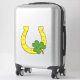 An illustration of a cartoon lucky golden horseshoe with green shamrock clover for St. Patrick's Day. Some believed that once hanged on your door this will give good luck to your home. This cute design is for lucky charm lovers and horse lovers.