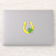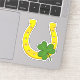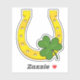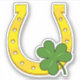 An illustration of a cartoon lucky golden horseshoe with green shamrock clover for St. Patrick's Day. Some believed that once hanged on your door this will give good luck to your home. This cute design is for lucky charm lovers and horse lovers.