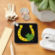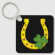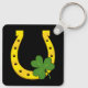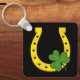 Lucky Golden Horseshoe with Shamrock on Black Key Ring