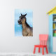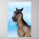 3D digital render of a cute smiling grulla horse with blue eyes on blue sky background. Perfect gift for everyone who loves fun and laughs