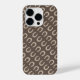 Lucky horse shoes in a luxury fashion pattern reminiscent of a French fashion house adorn this iPhone 14 Pro case in neutral shades.