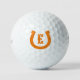 Lucky horseshoe logo custom monogram Titleist Golf Balls. Personalise with text, lucky number or monogram. Orange or custom colours. Col gift idea for avid golfer, ranch owner, horse rider, horse lover, farmer, cowboy, coworker, sporty dad, husband etc.  Western typography font.  Also available on other brands like Callaway, Wilson, Bridgestone and Taylor Made.