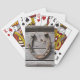 This deck of cards features an old horseshoe with red rust on its surface. The horseshoe, a sign of good luck, hangs on an old wall of aging silver knotted wooden planks. There's a placeholder for your name, initials or business.