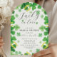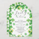 Modern & fun Irish Lucky in Love Shamrock bridal shower Invitation featuring a beautiful four leaf clover border with golden horseshoes.