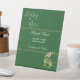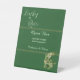 Customize your Bridal Shower with personalized Pedestal Signs. Invite your guests for a Bridal Shower party 'Open Bar' with lucky shamrocks on the eve of St. Patrick's Day. The illustration has "Lucky in Love" with green, gold shimmering shamrocks, 4 leaf clovers. The text uses modern calligraphy and is easily customizable.