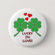 Lucky In Love Hearts Clover 6 Cm Round Badge