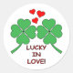 Drawings of four-leaf clovers with heart shapes floating over them.