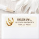 Design features two golden watercolor horseshoes on a cream ivory background and matches our Lucky in Love Horseshoe wedding & engagement invitation set. Add your name and address in rich chocolate brown lettering. Coordinating accessories available in our shop!