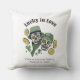 This Irish "Lucky in Love" throw pillow features hand-drawn sugar skulls outfitted in Irish hats and scarves surrounded in gold shamrock coins and green clovers. Elegant white background. Personalise with couple's names and wedding date. Ideal for newlywed, anniversary, wedding, wedding shower, bridal shower, etc.