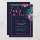 Lucky In Love Neon Pink Tropical Retro Wedding Invitation