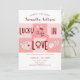 BET ON LOVE! For your bachelorette party, choose this retro, girly Lucky In Love Vegas Casino Bachelorette Weekend Invitation template, with a bold fun design in pink and cherry red.