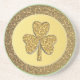 This awesome sandstone coaster features a graphic image of a gold coin with two shades of gold. The outer circle has a rough texture. Inside the inner circle of the coin is a textured golden shamrock made up of 3 leaves and a stem.