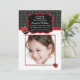A sweet photo invitation featuring ladybugs and a black and white polka dot background with red accents. Perfect for little girl's birthdays!