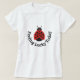 This quirky t-shirt design features a mischievous twist on a classic ladybug, blending cute and creepy for a fun, edgy look
