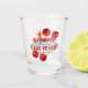 A shot glass featuring the famous Welcome to Fabulous Las Vegas sign with red dice. An original art graphic by urbanphotos.net