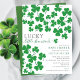 This elegant and charming lucky little shamrock baby shower invitation features a beautiful pattern of shamrocks, symbolising luck and love. The repeated image of shamrocks creates a whimsical and festive atmosphere, perfect for celebrating the the mum to be. The design is classic and timeless, making it a wonderful choice for a traditional yet joyful baby shower celebration.