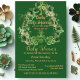 A green, gold, lucky 4 leaf clover invitation for Baby Shower on the LUCKY occasion of St. Patrick's Day for the arrival of little shamrock. The green botanical design features heart shaped shamrocks on the border. Reverse side has a matching design. The TEXT is easily customisable with your words.
