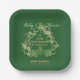 Organise your special event with a shamrock theme. A green, gold, lucky 4 leaf clover paper plate for Baby Shower on the LUCKY occasion of St. Patrick's Day for the arrival of your little shamrock. The green botanical design features heart shaped shamrocks on the border. The TEXT is easily customisable with your words.
