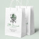 This cute white "Lucky Little Shamrock" gender neutral baby shower gift bag features a chic hand-drawn Irish Victorian baby carriage adorned in soft green tones and surrounded by green lucky shamrocks. Perfect baby shower favour bag!