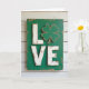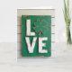 This card features a tall, rustic wooden sign set against whitewashed horizontal planks, with soft, diffused light bringing out the grain and worn paint. Centered on the sign is the word “LOVE,” and the “O” is replaced by a green four-leaf clover ☘️ that feels like a quiet wink between close friends. The background board is a deep emerald green 💚, with scuffed edges that reveal hints of natural wood. The raised letters “L,” “V,” and “E” sit prominently in antique white, their chipped finish giving them a tender, timeworn look, like something kept close over the years. The clover is slightly distressed too, tying it into the aged texture of the sign and adding a gentle, cozy charm. The lettering is placed in the middle of the board and stands out clearly against the green, while the surrounding plank wall stays pale and understated. Fine paint imperfections and subtle shadows along the raised letters and clover add depth across the sign’s surface.