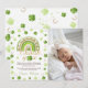This Lucky One Photo Thank You Card is a beautiful way to share gratitude and memories. Designed with watercolor shamrocks and a festive rainbow, it features space for your child’s photo, creating a personalized keepsake. Perfect for St. Patrick’s Day–inspired first birthdays and coordinated party sets.