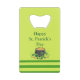 A lucky pot of gold, this St. Patrick's day bottle opener features a lime green background, "Happy St. Patrick's Day" in green font with a pot of gold and green stripes at the bottom. The back continues the lime green background with the green stripes at the bottom. Add your own text, photos, and artwork to the design.