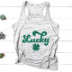 Share the luck o' the Irish with our super cute vintage inspired St Patrick's Day tank top. Design features "lucky" in emerald green retro bubble script typography and a four leaf clover illustration with a distressed vintage effect.