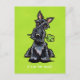 Order as is or personalise this for a unique greeting. From Andie's original ink & coloured pencil illustration of a dark brindle Scottish Terrier holding a four leafed clover. Great gift for Scottie lovers.