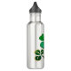 Green Lucky Shamrock Clover Happy St. Patrick`s day water bottle. Three shamrocks in different green shades. Clovers with four leaves for the luck.