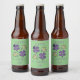 Violet Lucky Shamrock Clover Happy St. Patrick`s day Beer Bottle Label. Clovers with four leaves for the luck.