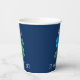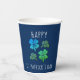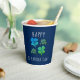 Green Lucky Shamrock Clover Happy St. Patrick`s day party Paper Cups. Three green and blue hand-drawn shamrocks on navy blue background. Clovers with four leaves for the luck.
