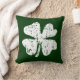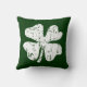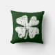 Green shamrock clover St Patricks Day throw pillow. Vintage look four leaf clover. Grunge style vector design for St Paddys Day party. St Pattys Day decoration. Irish pride decor.