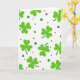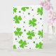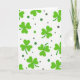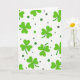 This design shows a repeating pattern of bright green shamrocks scattered across a white background, their heart-shaped leaves leaning toward each other like close friends in a quiet, affectionate moment 💚. Between the clovers, round polka dots appear in a mix of deep emerald green and soft gray, adding contrast without crowding the space ☘️. The shamrocks are spaced evenly so the white background stays open and airy, like fresh paper under spring light. There are no characters or scenery beyond the pattern, but the paired curves of the leaves and the gentle spacing create a cozy, companionable feel. The main greeting text sits centered near the top in green, standing out clearly against the white. A smaller line of text rests near the bottom in gray, echoing the dot color and keeping the layout balanced. The overall look stays simple and modern, with the greens drawing the eye while the gray dots quietly anchor the design. Each shamrock is a crisp three-leaf clover in a lively green, surrounded by scattered dots in emerald and gray on a bright white field.
