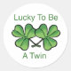 Two clovers illustrate how lucky you are to be a twin or relative of a twin.