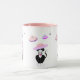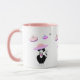 Cute mug with a lucky tuxedo cat and flying saucers pattern. The text on the right side can be personalised.