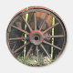 Old western wagon wheel with lucky horseshoes photo fridge magnet