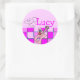 with whimsy kitten and guitar with flowers and Pink n pretty everything! The name is Lucy. The sticker is great for Graduations, School, labels, parties, announcing new born baby and More! yay Lucy!