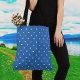 Ladies Large Shoulder Bag in geometric grid of rotating thin white shapes on a royal blue base colour.