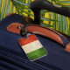 Luggage tag with dirty vintage flag from Italy. We change and add both text and colours, as well as size and placement, all upon request. Contact us with your unique needs and we do the rest!