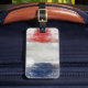 Luggage tag with REAL dirty vintage flag from France. We change and add both text and colours, as well as size and placement, all upon request. Contact us with your unique needs and we do the rest!