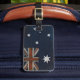 Bag tag with cool flag from Australia. The best way to identify your luggage when travelling the world. We change and add both text and colours, as well as size and placement, all upon request. Contact us with your unique needs and we do the rest!
