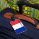 Travel in style with our exclusive luggage tag featuring the flag of France!